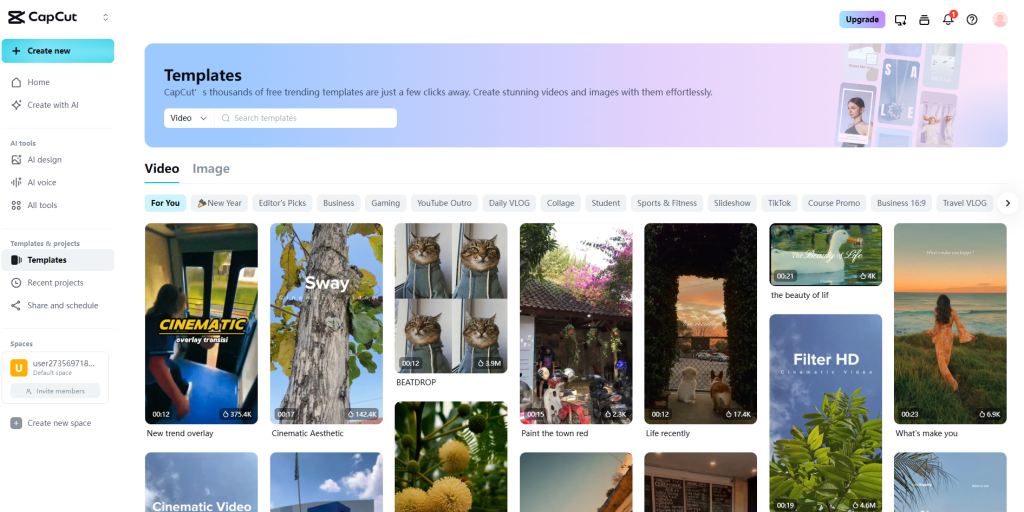 CapCut sendiri punya menu khusus yang menampilkan template-template populer.