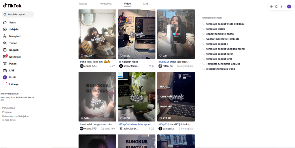 Banyak kreator yang memang khusus membuat template di CapCut. Biasanya mereka punya gaya khas dan template yang sering jadi tren.